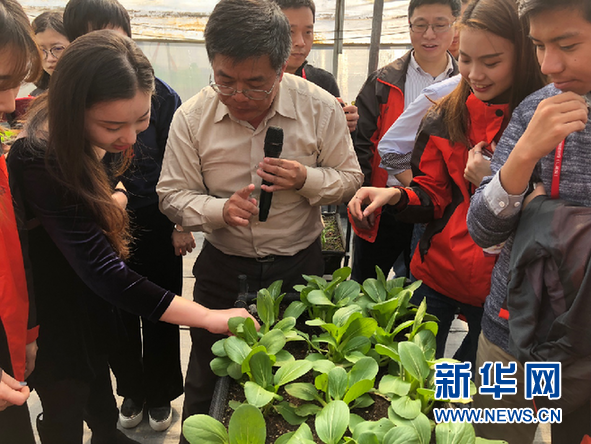 蔡海璋博士請(qǐng)記者們現(xiàn)場(chǎng)品嘗“零污染”青菜。新華網(wǎng) 卓越 攝