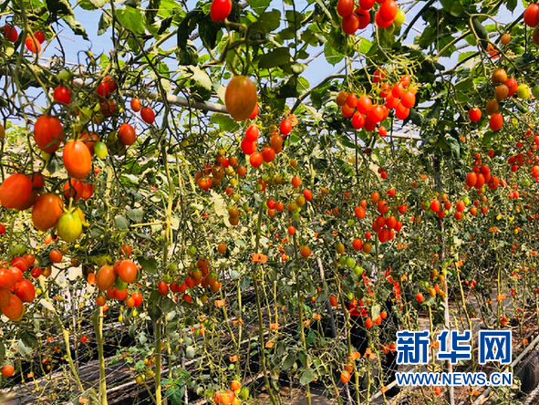 松樹(shù)崗村“空中田園”里正值采摘季的玉女番茄。 新華網(wǎng) 卓越 攝