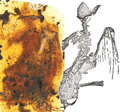 2月2日,中加美等國的古生物學家在北京宣布,他們在一枚距今約一億年的白堊紀琥珀中發(fā)現(xiàn)了一只如蜂鳥般大小的、幾乎完整的小鳥,該研究成果在中國頂級學術(shù)刊物《科學通報》(英文版)作為封面文章在線發(fā)表。該研究由中國地質(zhì)大學(北京)邢立達副教授等學者共同研究。