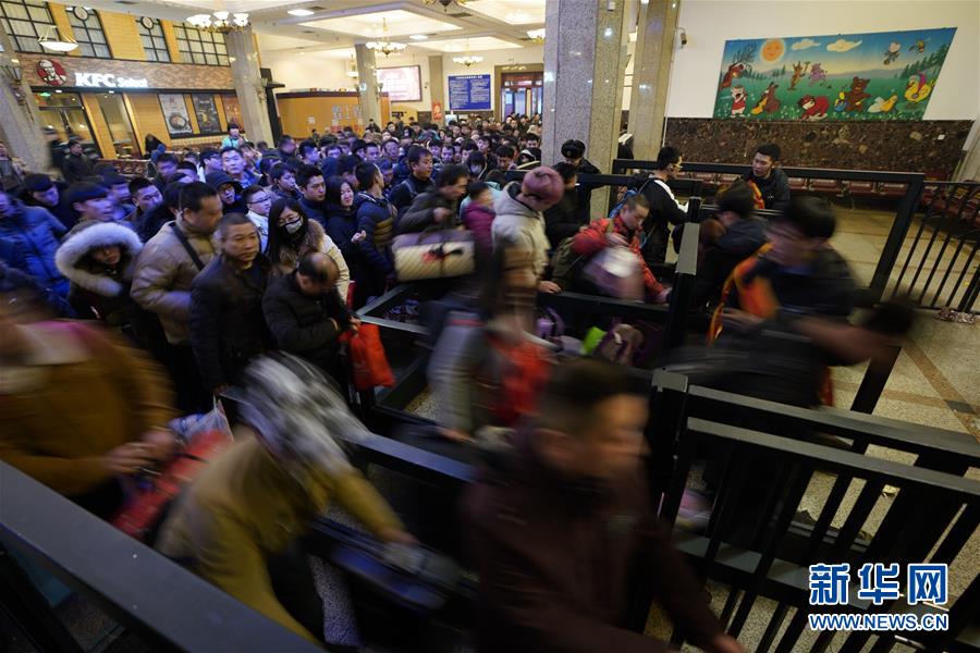 2月1日凌晨,乘坐由北京站發(fā)往重慶北站的3603次列車的旅客在北京站進站乘車。當日,2018年春運正式啟動。新華社記者 邢廣利 攝