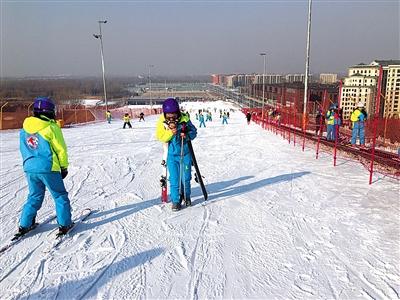 2月6日下午,位于大興區(qū)的龍熙滑雪場內(nèi),上百名滑雪者在此滑行。新京報(bào)記者注意到,許多滑雪初學(xué)者在雪道下方的緩沖區(qū)域內(nèi)練習(xí),一旁練習(xí)道上的滑雪者寥寥無幾。“在哪兒都一樣。”一名在緩沖區(qū)域雪道上逆行、自稱沒有任何滑雪基礎(chǔ)的滑雪者稱。
