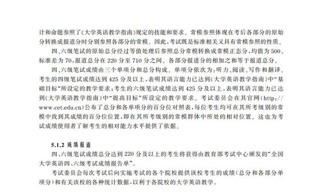 四、六級筆試成績總分達到220分及以上的考生將獲得由教育部考試中心頒發的“全國大學英語四、六級考試成績報告單”。