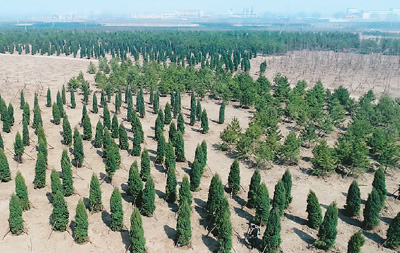 苗景兼用林的樹(shù),其中相當(dāng)一部分將種在“千年秀林”中。作為雄安新區(qū)已經(jīng)啟動(dòng)的兩大工程之一,“千年秀林”已有上萬(wàn)畝規(guī)模。從容城至雄縣的路上,路邊遍是精心栽植后,用木棍撐著的小樹(shù)苗。