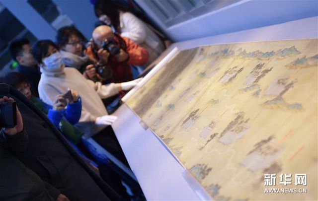 2017年11月,故宮博物院獲捐一幅極具珍貴歷史價值的文物——《絲路山水地圖》。該文物繪于絹本之上,是一幅繪制于明代中后期的青綠山水手卷,描繪了東起嘉峪關(guān)西至天方城(今沙特阿拉伯的麥加)的遼闊地域范圍。