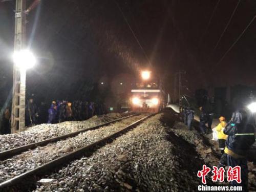 圖為14日凌晨首趟列車(chē)39911次通過(guò)塌陷區(qū)段 呂恩超 攝