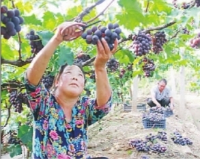 陽原縣東城鄉五馬坊葡萄大豐收,農戶正在采摘葡萄。仝輝 攝/光明圖片