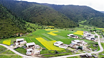 上圖為普達措國家公園洛茸村一景(7月18日無人機拍攝)。新華社記者 胡超 攝