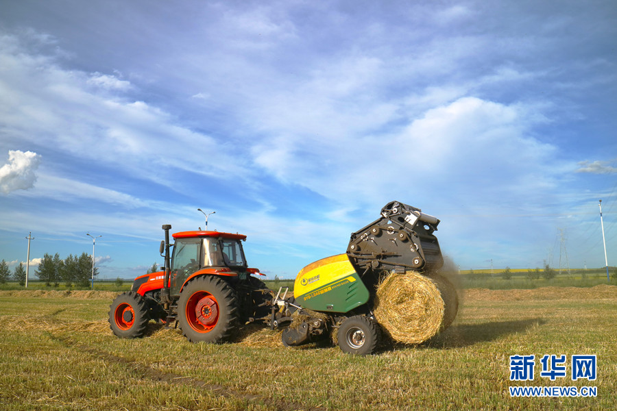 內蒙古呼倫貝爾農墾集團施業區面積約3萬平方公里,有耕地600萬畝,草場1000萬畝。集團下轄海拉爾、大興安嶺兩大農墾集團和7個專業公司,有24個現代化農牧場。自1954年開發建設以來,墾區實行半軍事化管理,80%以上耕地集中統一耕種,采用先進的大型農機設備,田間綜合機械化水平達99%,農業科技貢獻率達到72%。圖為7月21日,一輛捆草機正在內蒙古呼倫貝爾市謝爾塔拉農場進行捆草作業。(新華網 汪亞/攝)