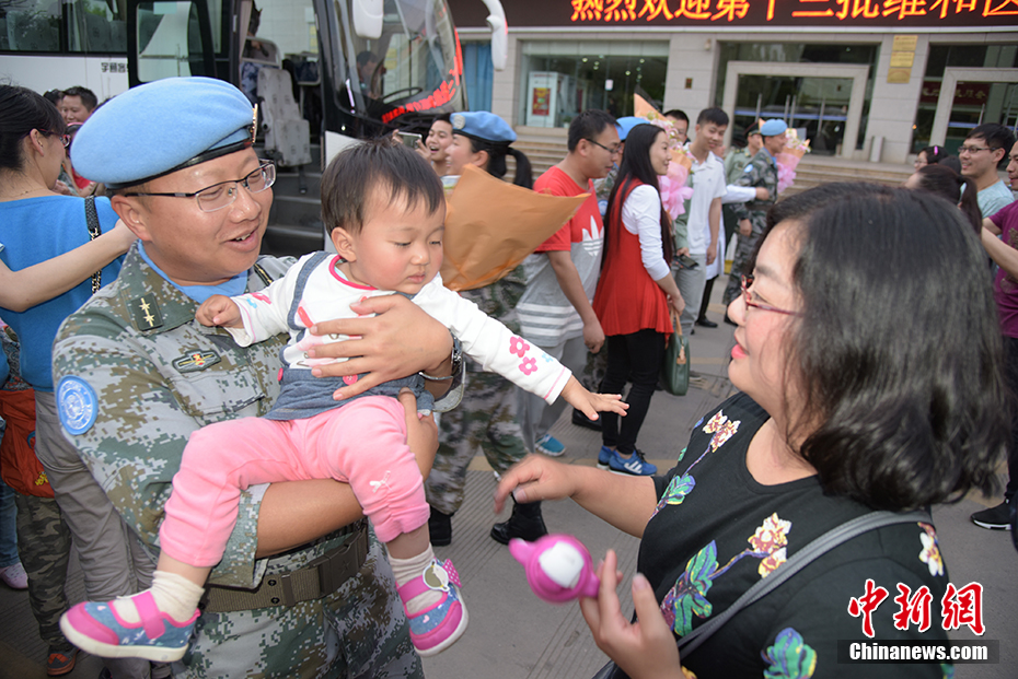 這,是他們的娃,難舍自己的爸爸。中新社記者 馬鑫 攝