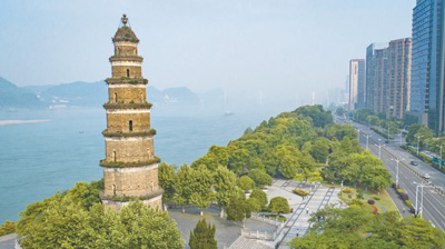 圖為宜昌江灘公園一角。新華社記者 肖藝九攝