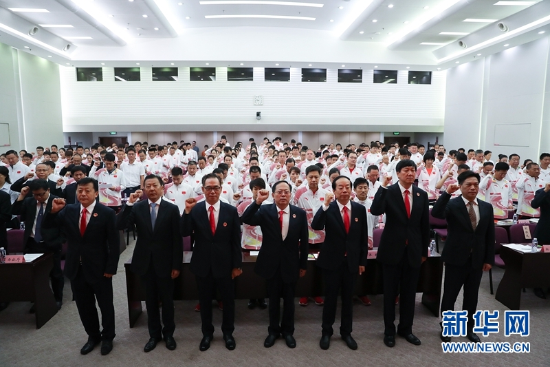 8月6日,代表團(tuán)成員在大會上宣誓。新華社記者 曹燦 攝