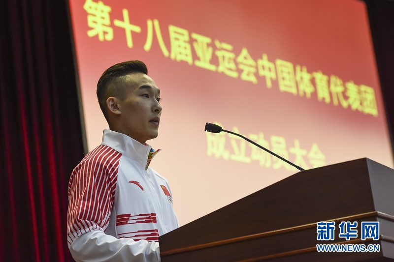 2017年體操世錦賽男子全能冠軍肖若騰作為運動員代表發(fā)言,他說:“四年一屆的亞運會,是亞洲最高競技水平的盛會,也是2020年東京奧運會的前哨戰(zhàn)。對于運動員來說,也是一次難得的檢驗訓(xùn)練成果和競技實力的寶貴機會。在雅加達(dá)亞運會的賽場上,(我們)將圓滿完成運動成績和精神文明雙豐收的參賽任務(wù)。”