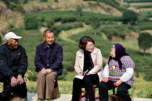 一位鎮黨委書記(右二)在走訪貧困戶 劉軍喜 攝
