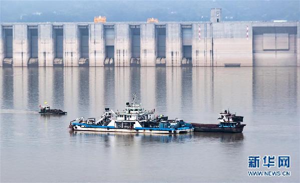 9月2日,清漂船舶在三峽大壩前清理水上漂浮物,為新一輪蓄水做準備。新華社發(鄭家裕 攝)