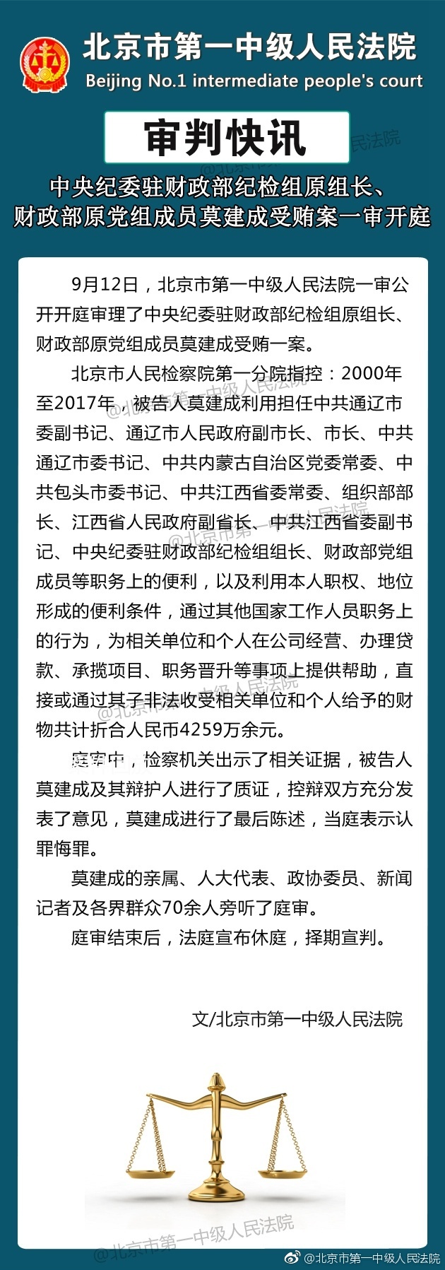 日前,經(jīng)中共中央批準,中共中央紀委對第十八屆中央候補委員,中央紀委駐財政部紀檢組原組長、財政部原黨組成員莫建成嚴重違紀問題進行了立案審查。2017-09-23 08:51:09