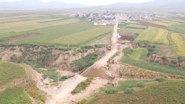 鄉里派出的工程隊往河道里傾倒土方堵水筑路,與山洪開展“拉鋸戰”。