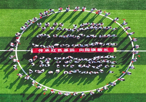 圖⑦ 9月29日,山東省滕州市實(shí)驗(yàn)小學(xué)開展“傳承紅色基因,向國(guó)旗敬禮”主題活動(dòng),慶祝新中國(guó)成立69周年。 宋海存攝