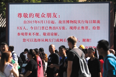 昨天是國(guó)慶假期第二天,也是故宮傳統(tǒng)的全年游覽高峰日。自2015年實(shí)行每日限流8萬(wàn)人次以后,故宮游覽高峰不再體現(xiàn)在游客數(shù)量,而是體現(xiàn)在“搶票”的激烈程度上。早在9月30日上午,10月2日的故宮門(mén)票就在網(wǎng)上銷(xiāo)售一空。