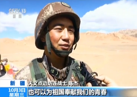 天文點邊防連戰(zhàn)士 陳杰:沒有人的地方我們也可以生存下來,也可以為祖國奉獻我們的青春。