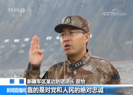 新疆軍區(qū)某邊防團團長 屈怡:能在這個地方堅持守防,靠的是對黨和人民的絕對忠誠,靠的是祖國萬歲的家國情懷。在沒有劃界的國土上,我們就是界碑。