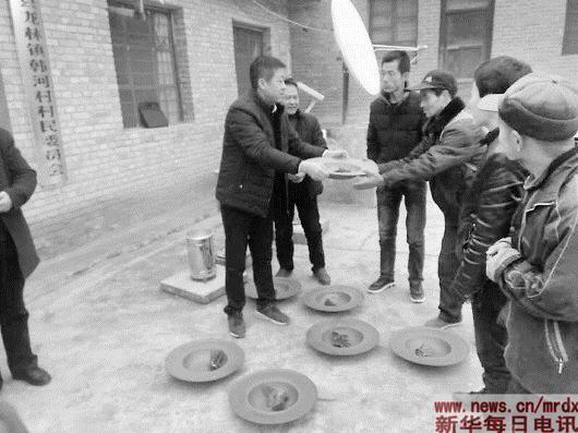 ▲秦彥軍(左二)生前為群眾發(fā)放過(guò)冬用火盆。