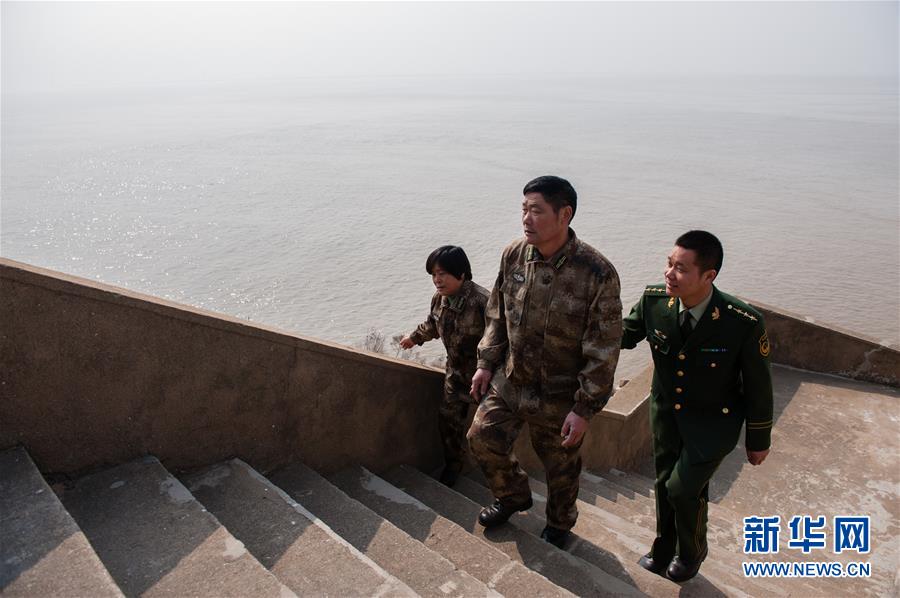 2015年2月13日,王志國(右)在開山島上陪父母巡島。