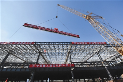 10月17日,京張高鐵清河站最后一組鋼梁將吊裝到位。新京報記者 王貴彬 攝