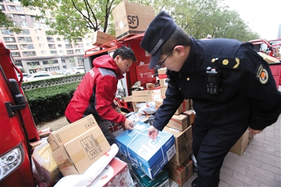 記者11月8日從東城城管獲悉,針對一些快遞包裹集散點“跑馬圈地”占用門前道路卸載、分揀、堆放包裹,快遞車輛亂停亂放的現象,城管等部門開展了執法檢查,對違規占道經營行為進行勸誡,嚴重的將對其予以500-5000元的行政處罰。