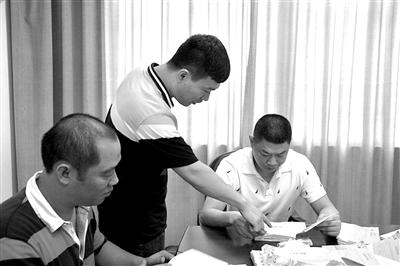 圖為蔡玉輝(右)與同事在核查問題線索。