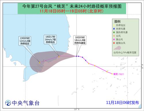 據中央氣象臺網站消息,18日06時中央氣象臺發布臺風藍色預警,今年第27號臺風“桃芝”生成,今晨5點“桃芝”中心位于越南胡志明市偏東約365公里的南海西南部海面上,預計將于今天傍晚前后在上述沿海登陸,以后強度將明顯減弱。