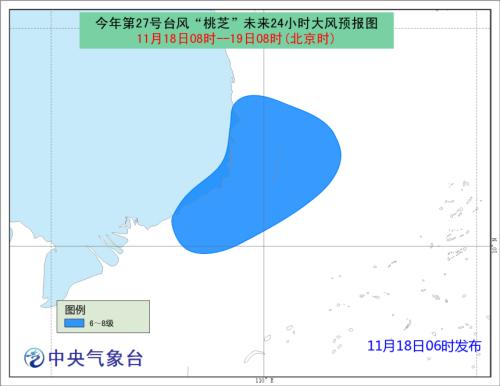 大風預報:18日08時至19日08時,南海西南部偏西海域和越南東南部沿海的風力仍可達6-8級,部分海域和地區陣風9-10級。