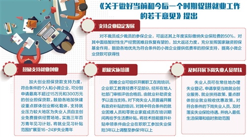 今年以來,我國就業形勢總體穩定,穩中有進。但是,個別地區、個別企業還面臨著一些新挑戰。為穩定就業,擴大幫扶范圍,增強支持力度,國務院日前印發《關于做好當前和今后一個時期促進就業工作的若干意見》,為相關部門和地方政府做好就業工作提供了明確的目標和方向——