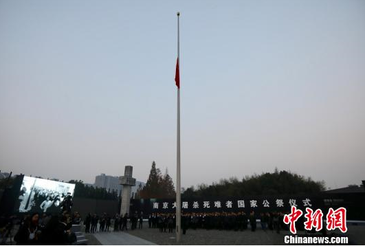 13日晨,7時整。在侵華日軍南京大屠殺遇難同胞紀念館集會廣場,舉行升國旗、下半旗儀式。