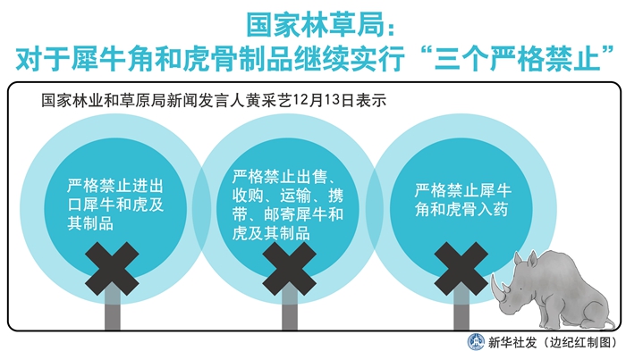 國家林草局:對于犀牛角和虎骨制品繼續實行“三個嚴格禁止” 新華社發 邊紀紅 制圖