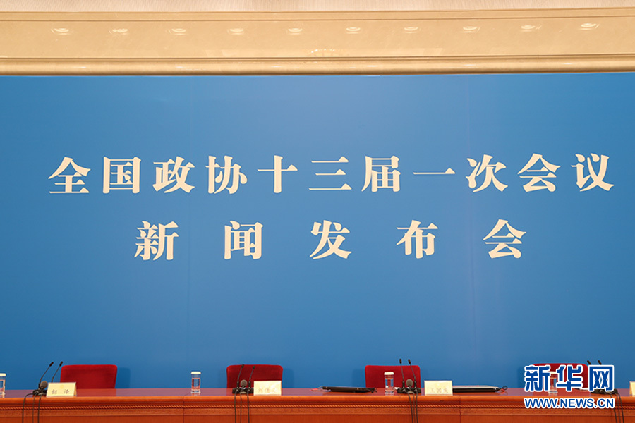 全國政協十三屆一次會議新聞發布會3月2日16:30在人民大會堂一層新聞發布廳召開,大會新聞發言人王國慶向中外媒體介紹本次大會有關情況并回答記者提問。圖為新聞發布會開始前。