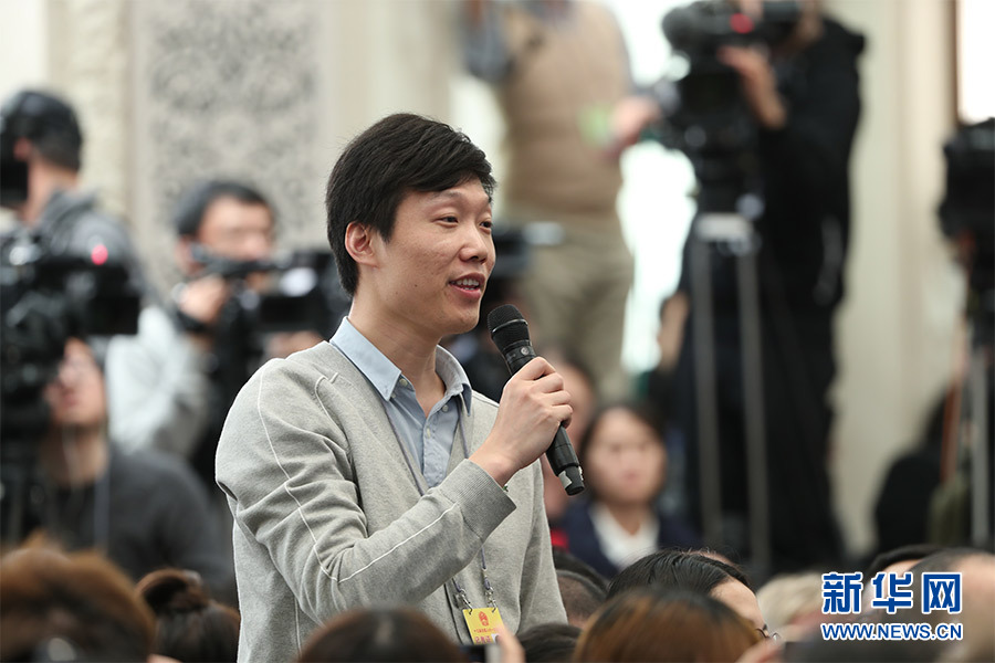 3月4日,十三屆全國人大一次會議在人民大會堂新聞發布廳舉行新聞發布會,由大會發言人張業遂就大會議程和人大工作相關的問題回答中外記者的提問。圖為法制日報記者提問。新華網/中國政府網 翟子赫 攝