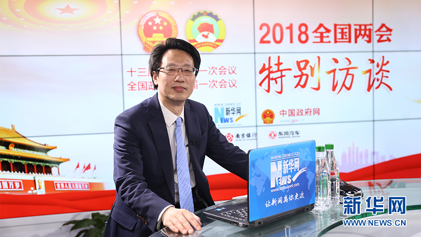 圖為,中國宏觀經濟研究院常務副院長王昌林做客新華網2018全國兩會特別訪談“新跨越兩會專家講” 新華網 張斌攝?
