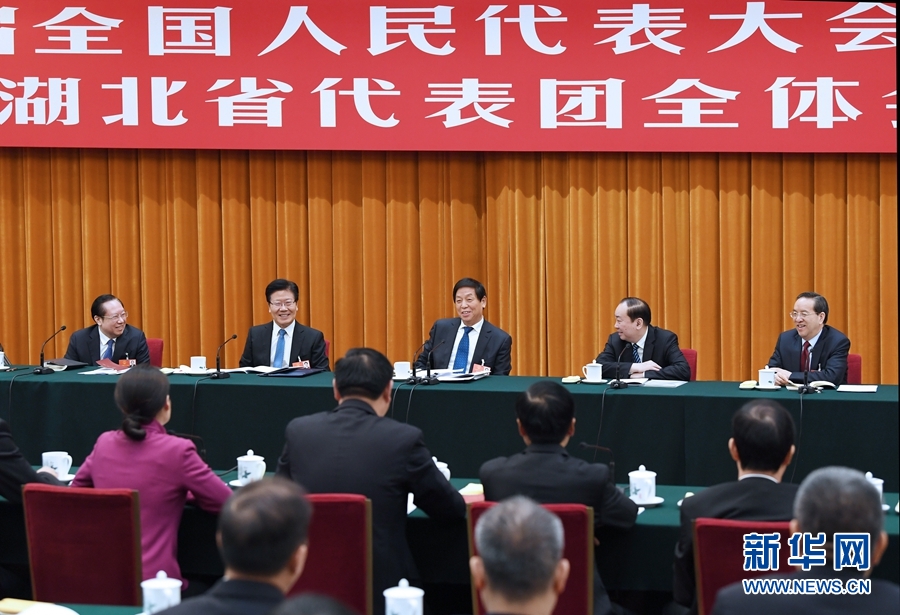 3月9日,中共中央政治局常委栗戰書參加十三屆全國人大一次會議湖北代表團的審議。