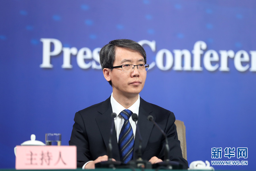 十三屆全國人大一次會議新聞中心于10日上午10時45分在梅地亞中心多功能廳舉行記者會,邀請科技部部長萬鋼、政策法規與監督司司長賀德方、創新發展司司長許倞就“加快建設創新型國家”相關問題回答中外記者提問。圖為本場記者會主持人。新華網/中國政府網 翟子赫 攝