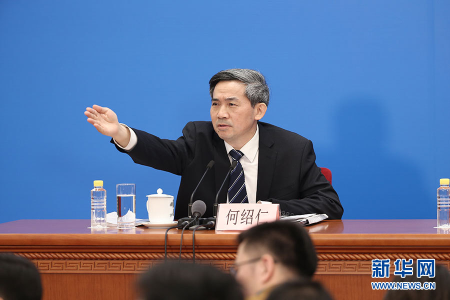 3月11日,十三屆全國(guó)人大一次會(huì)議新聞中心在人民大會(huì)堂一樓新聞發(fā)布廳舉行記者會(huì),邀請(qǐng)十三屆全國(guó)人大一次會(huì)議秘書處法案組組長(zhǎng)、全國(guó)人大常委會(huì)法工委主任沈春耀,法案組副組長(zhǎng)、全國(guó)人大常委會(huì)法工委副主任鄭淑娜就“憲法修正案”相關(guān)問題回答中外記者提問。圖為記者會(huì)主持人何紹仁。新華網(wǎng)/中國(guó)政府網(wǎng) 翟子赫 攝