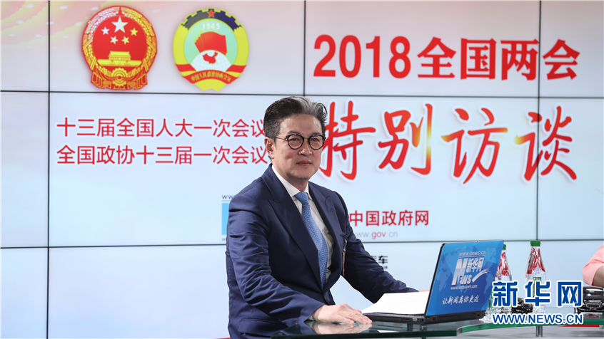 ??????? 全國人大代表、康恩貝集團有限公司董事長胡季強做客新華網2018全國兩會特別訪談 新華網 楊锘攝