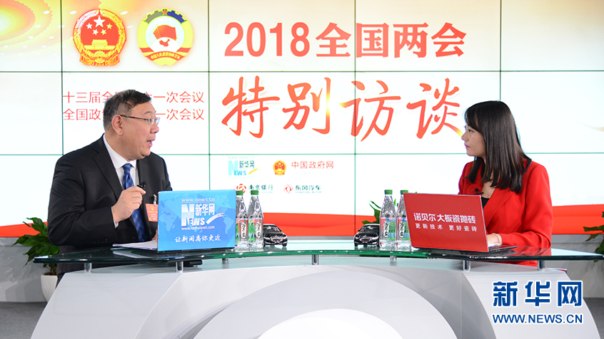 3月12日,全國人大代表、國家電網(wǎng)湖南省電力有限公司董事長孟慶強(qiáng)(左)做客新華網(wǎng)2018全國兩會(huì)特別訪談。新華網(wǎng) 楊濛攝