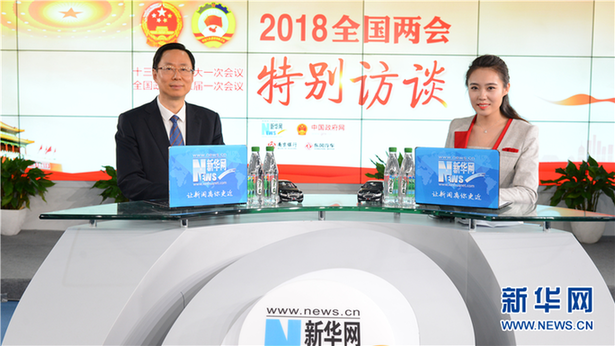3月14日,全國(guó)人大代表、南京市市長(zhǎng)藍(lán)紹敏(左)做客新華網(wǎng)2018全國(guó)兩會(huì)特別訪(fǎng)談。新華網(wǎng) 楊濛攝