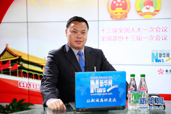 圖為河南省平頂山市寶豐縣大黃村黨支部書記馬豹子做客新華網2018全國兩會特別訪談
