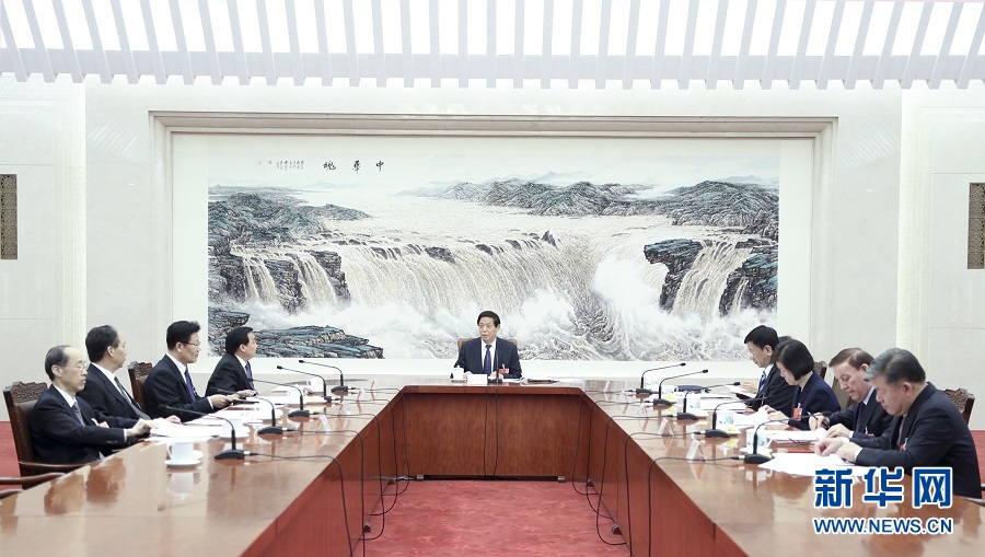 新華社北京3月18日電? 十三屆全國人大一次會議主席團常務主席第七次會議18日下午在人民大會堂舉行。大會主席團常務主席栗戰(zhàn)書主持會議。