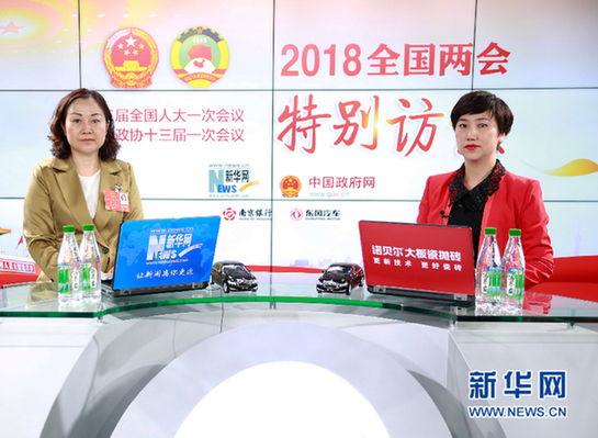 圖為全國人大代表、新野鼎泰高科精工科技有限公司總經理王馨做客新華網2018全國兩會特別訪談