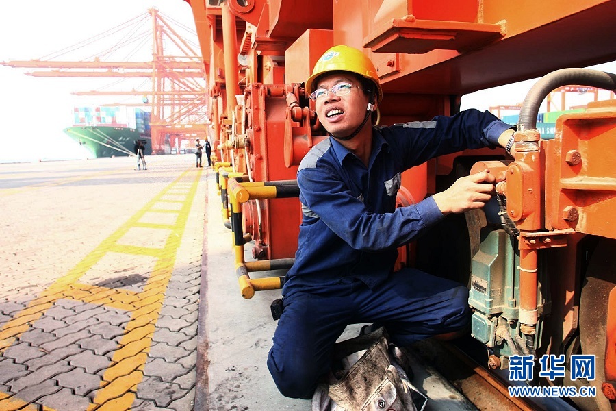 馮鴻昌在檢修港口設備(2007年12月7日攝)。從業21年,馮鴻昌從一名普通學徒起步,一步步成長為廈門集裝箱碼頭集團有限公司高級技師、全國勞動模范,榮獲中華技能大獎。他的微信頭像里,“匠人匠心”四個字分外顯眼。逐夢征程,需要價值追求的引領和精神力量的支撐。新華社記者 姜克紅 攝