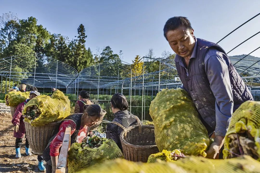 2018-11-17,湖北來鳳。 生姜是來鳳縣土特產,農民正在把生姜裝車。作者:楊秀國