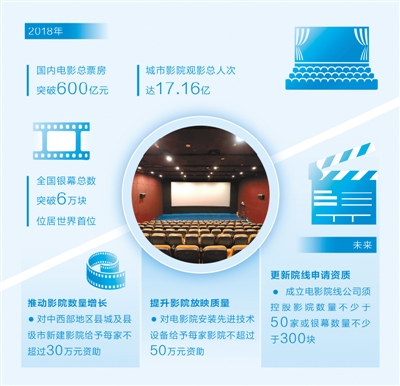 2018年中國電影市場,成績亮眼,電影銀幕總數位居世界首位,影院建設持續多年高速增長。與此同時,影院發展不平衡不充分、中西部地區特別是縣級城市及以下地區覆蓋不足、電影院線制改革亟須深化等問題也擺在眼前。