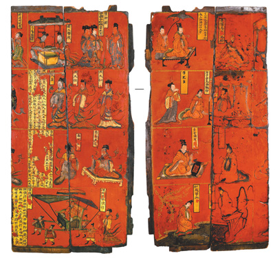 南京博物院展出的司馬金龍墓列女古賢漆畫(huà)屏風(fēng)板。